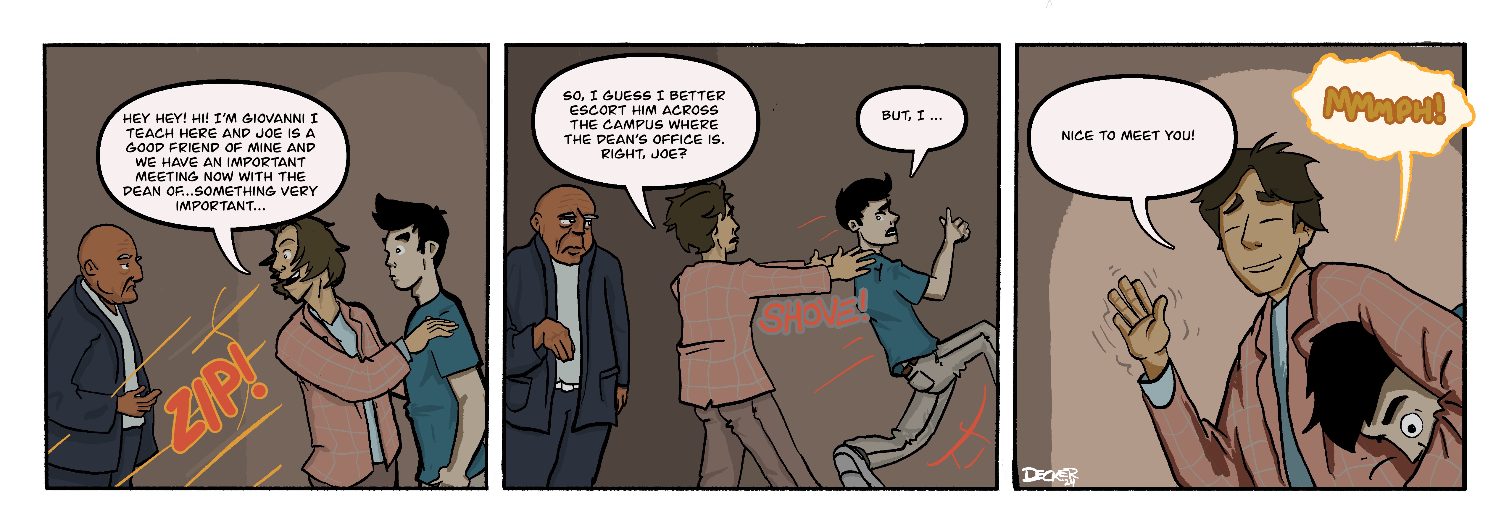 This was a fun strip to draw. From the cordial to the faux-friendly Giovanni, those expressions may be slightly over-cartoony, but I’m sticking with ‘em!